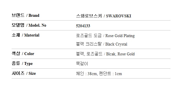 [15% 쿠폰] (W) 스와로브스키 아이코닉 스완 펜던트 스몰 블랙 로즈 골드 플래팅