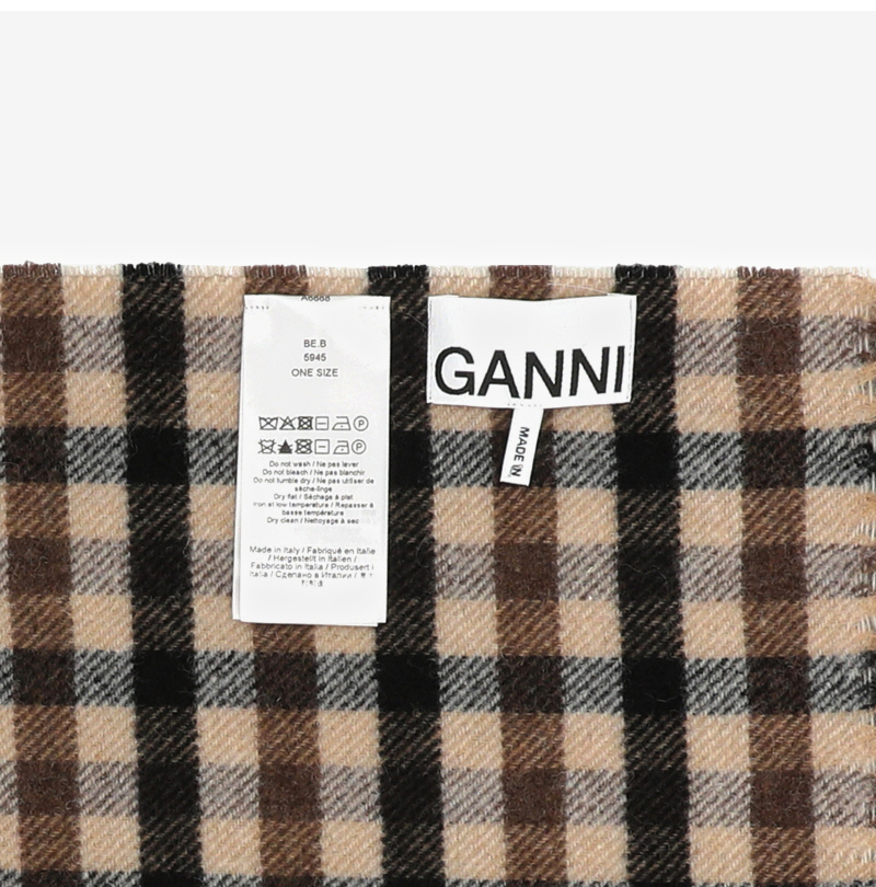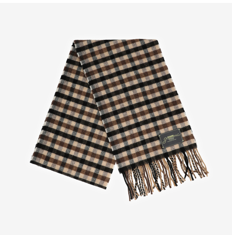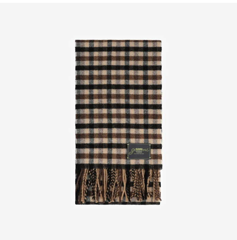 [13% 쿠폰] Ganni Check Fringed Wool Scarf Chicory Coffee