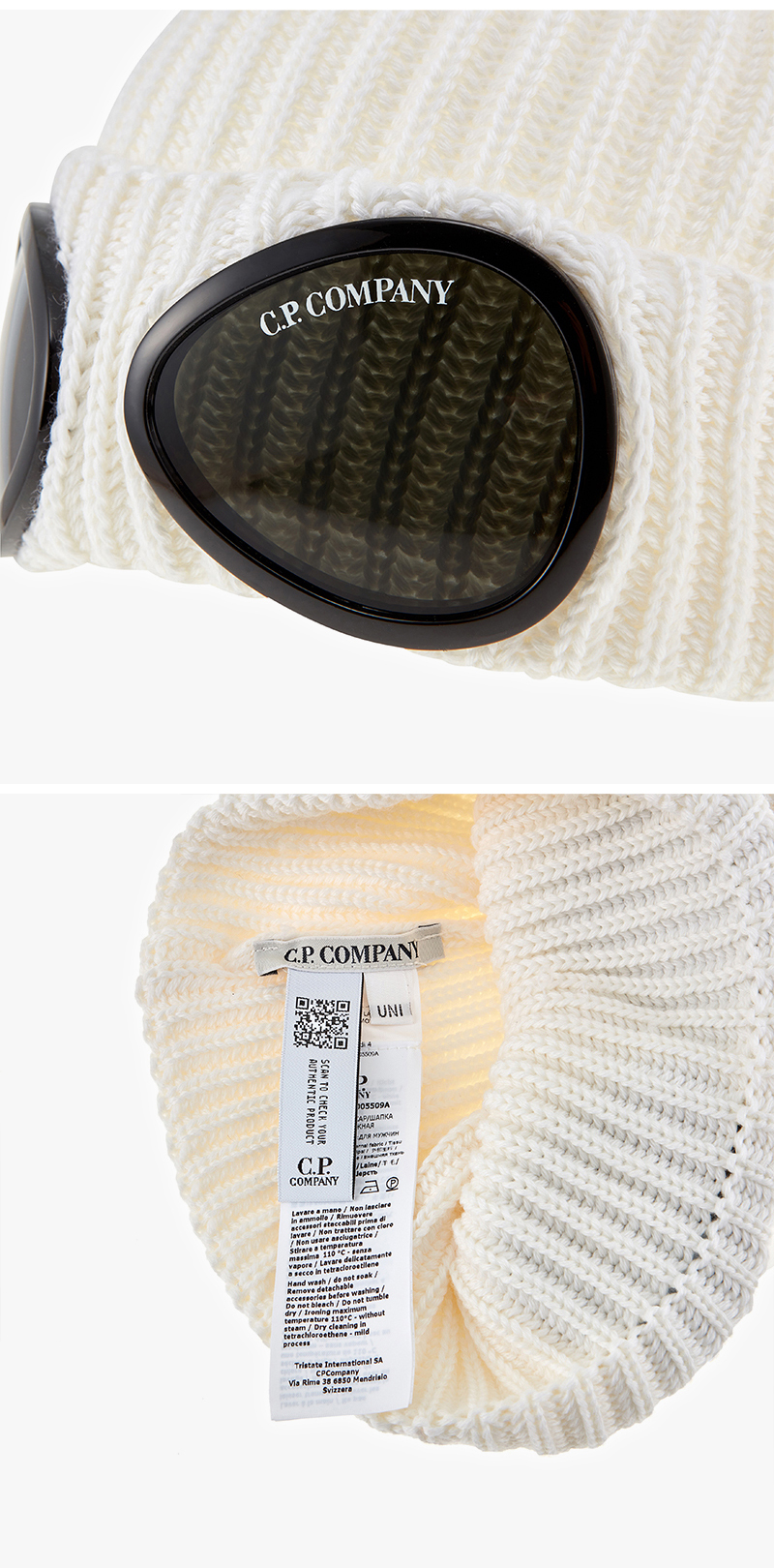 [15% 쿠폰] C.P. 컴퍼니 엑스트라 파인 메리노 울 고글 비니 거즈 화이트 - 25FW