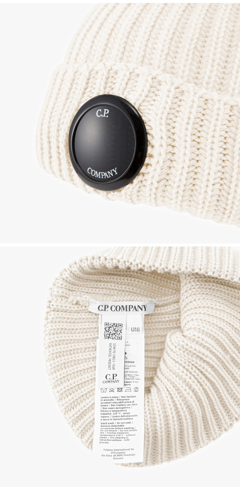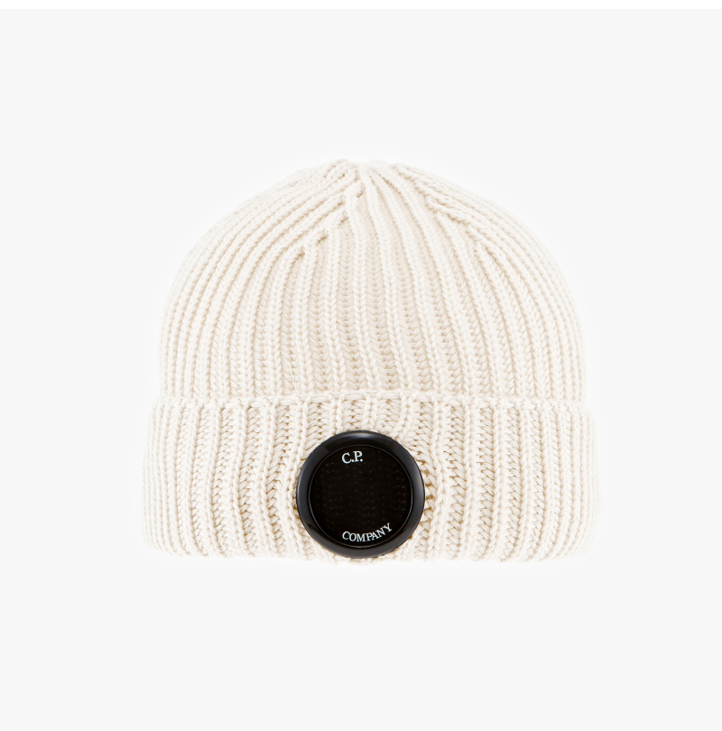 [15% 쿠폰] C.P. 컴퍼니 엑스트라 파인 메리노 울 렌즈 비니 거즈 화이트 - 24FW