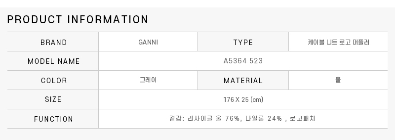 [13% 쿠폰] 가니 케이블 스카프 프로스트 그레이