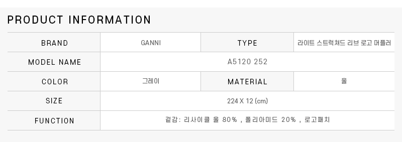[13% 쿠폰] 가니 립 니트 스카프 팬텀