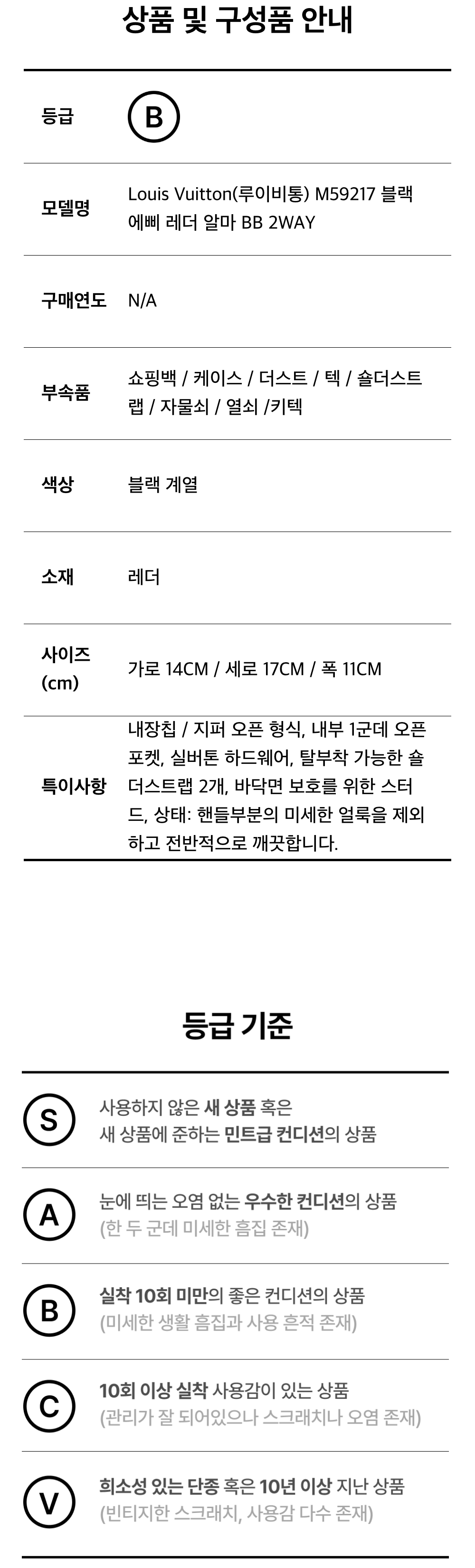 루이비통 M59217 블랙 에삐 레더 알마 BB 2WAY 웨이 백