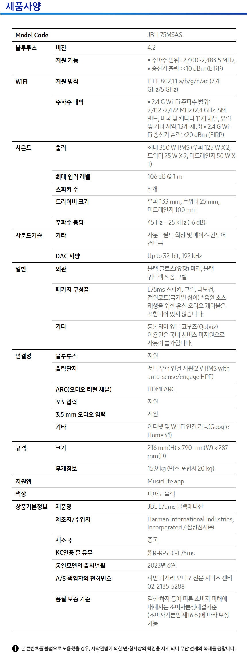 제이비엘 L75MS 프리미엄 올인원 뮤직 시스템 블루투스 스피커 블랙