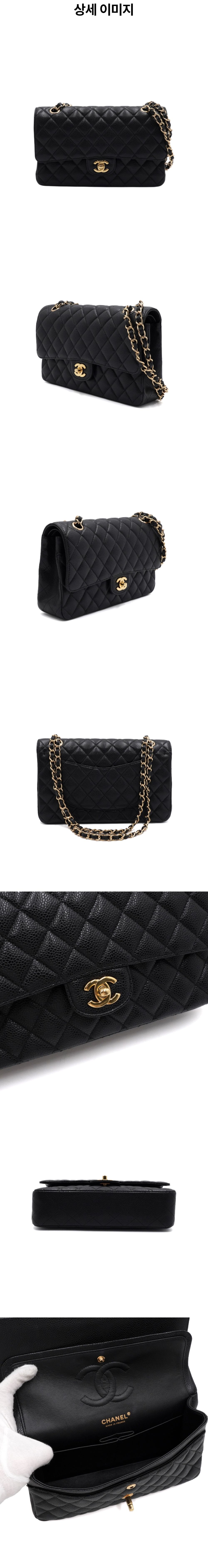 샤넬 A01112 블랙 캐비어 클래식 미듐 금장체인 숄더백aa58462