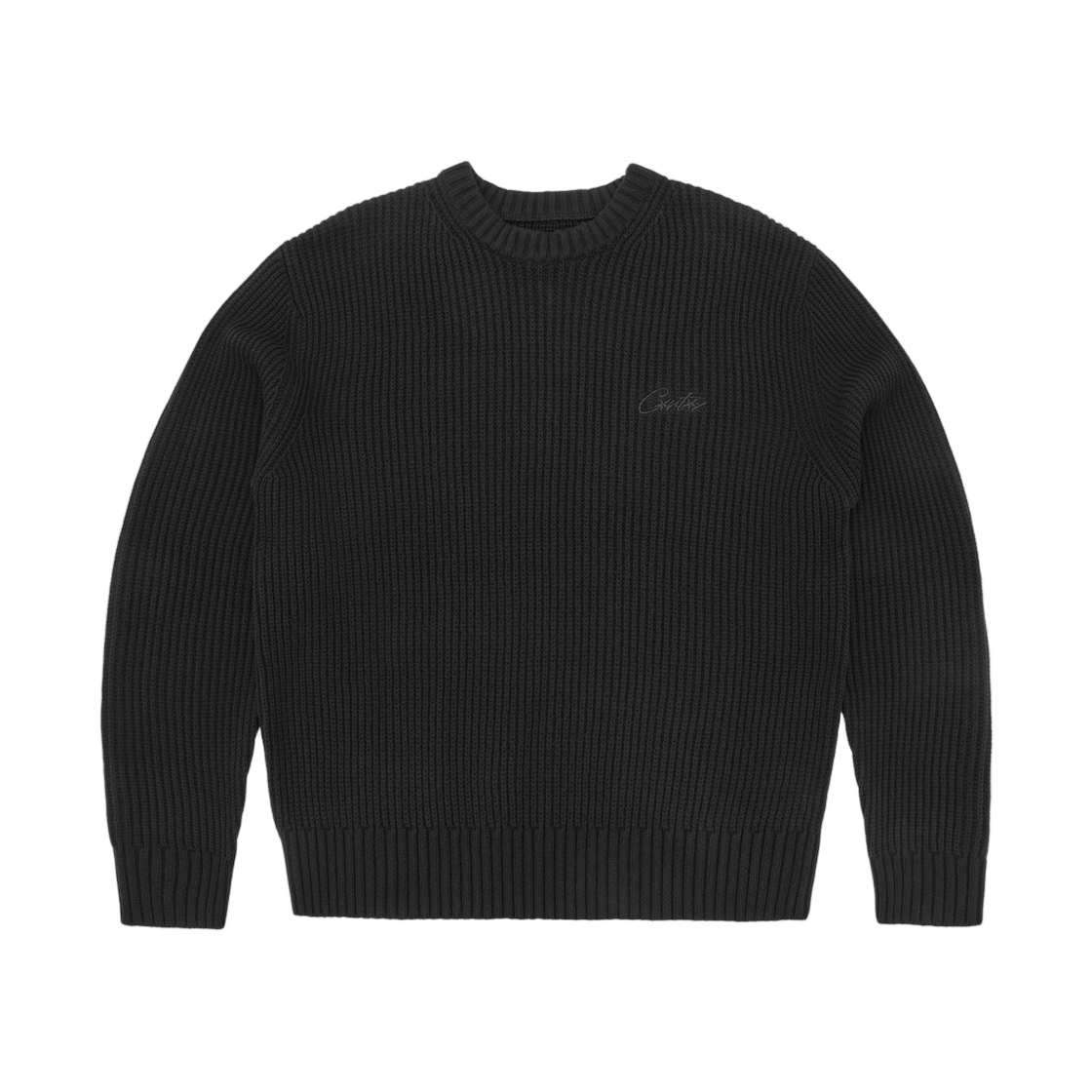 코르테이즈 크로쉐 아플리케 니트 크루 트리플 블랙