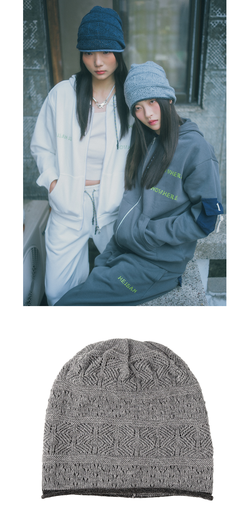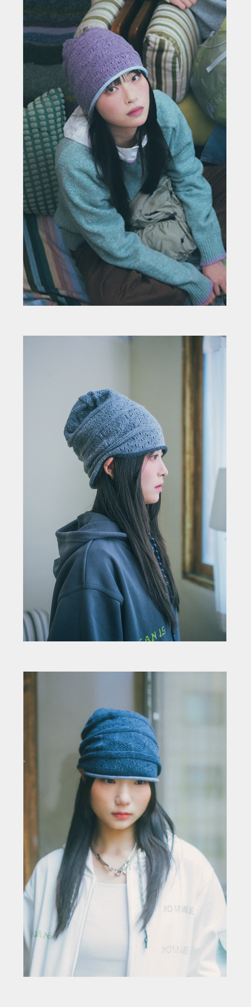 캐시미어와 울의 특징을 모방한 합사 원사를 사용하여 부드럽고 편안한 착용감의 니트 비니입니다. 톡톡한 컬러감과 내추럴한 말림 밑단, 스카시 조직으로 빈티지한 무드를 연출해줍니다.