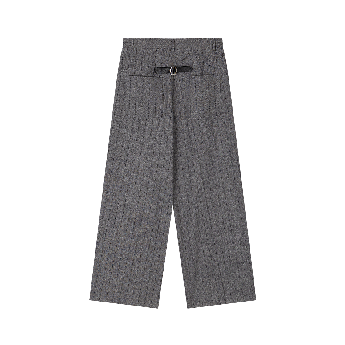 웨이비니스 백 레더 신치백 투 턱 트라우저 그레이 헤링본