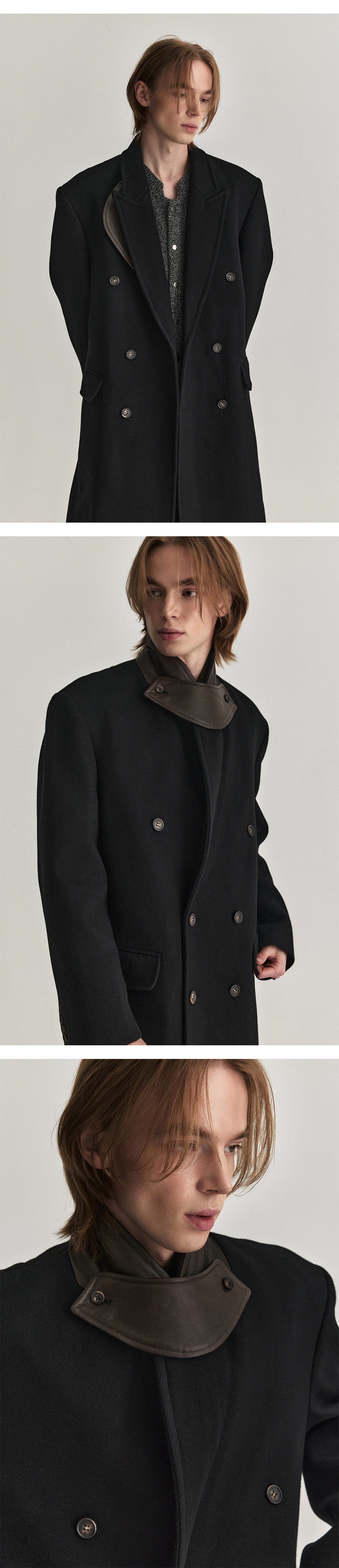 웨이비니스 카라 베이스 레더 더블 롱 코트 블랙