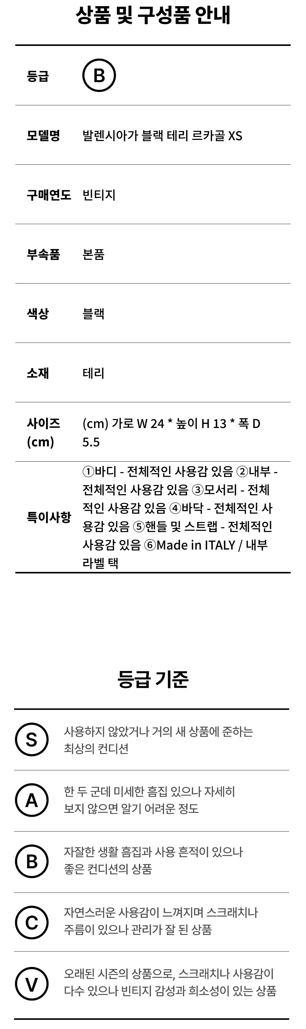 발렌시아가 블랙 테리 르카골 XS A-A35078
