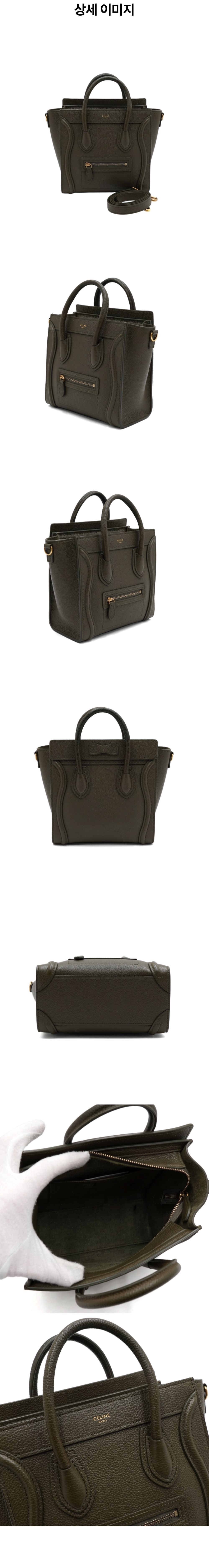 셀린느 189243DRU 다크올리브 드럼 카프스킨 러기지 나노 토트백 겸 숄더백aa56754