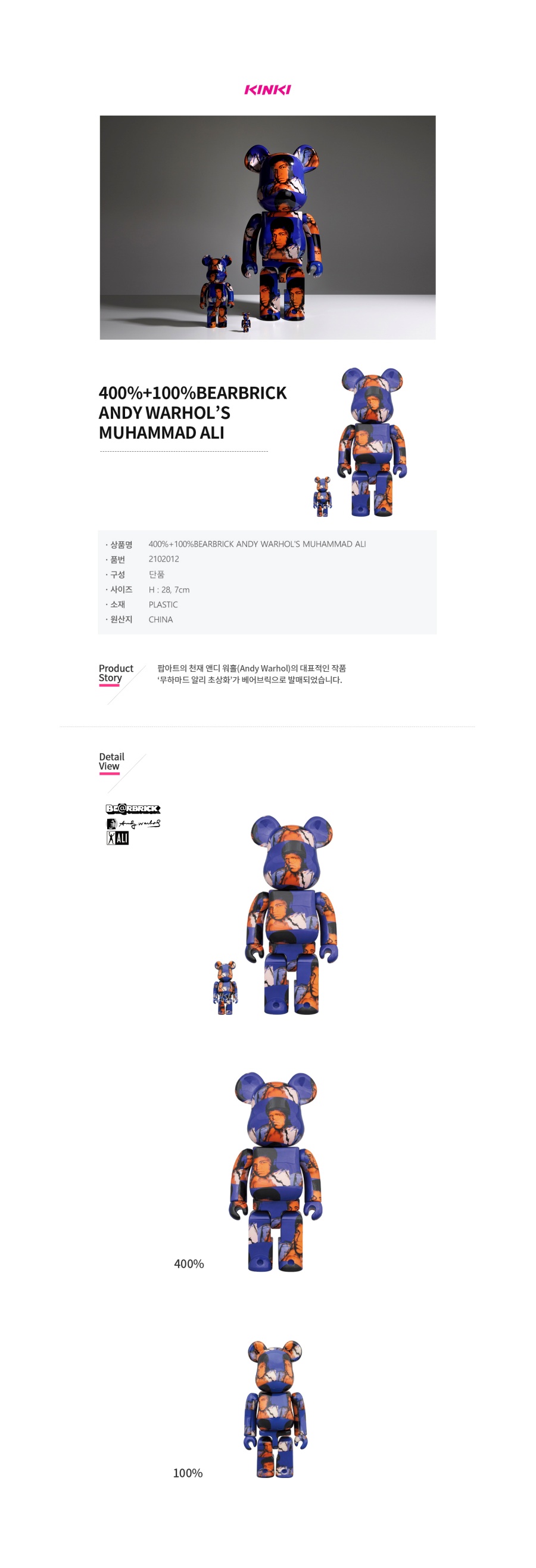 킨키로봇 400%+100%베어브릭 앤디워홀 무하마드 알리 (2102012)
