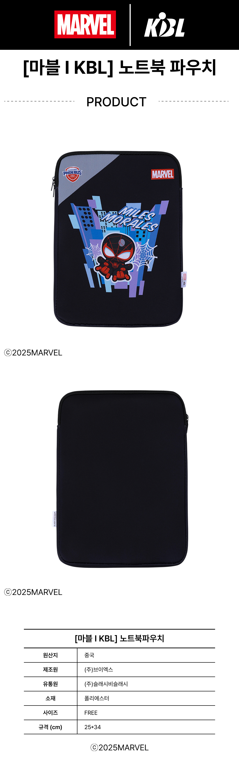 케이비엘 X 마블 컬렉션 울산 현대모비스 마일스모랄레스 노트북 파우치