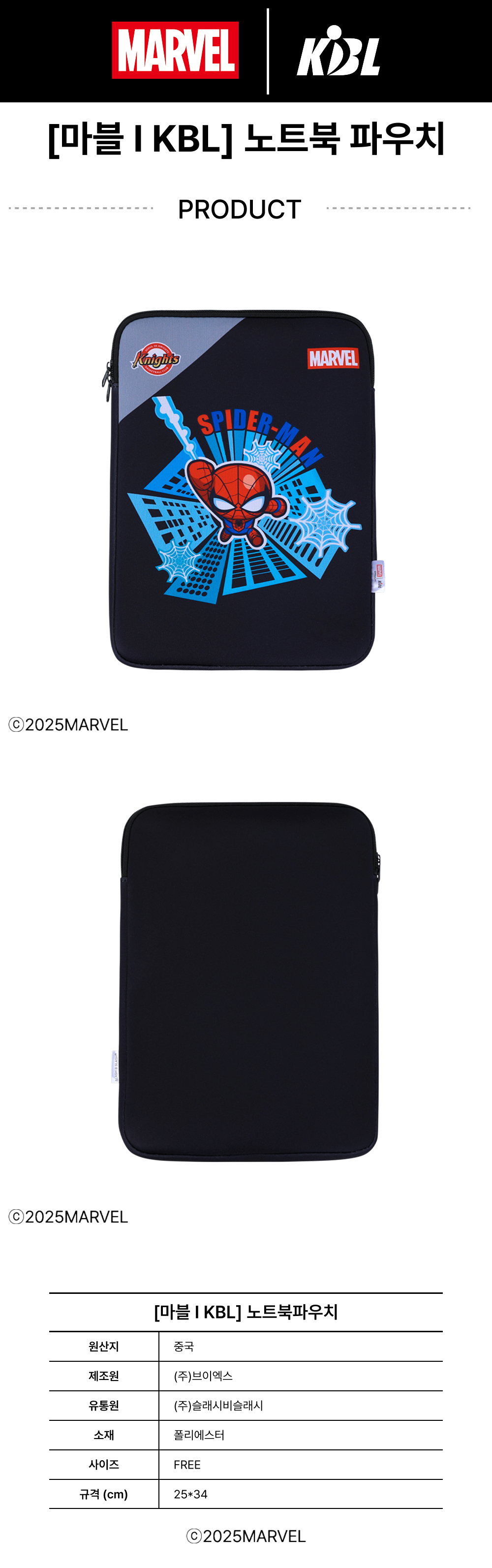 케이비엘 X 마블 컬렉션 서울 SK 스파이더맨 노트북 파우치