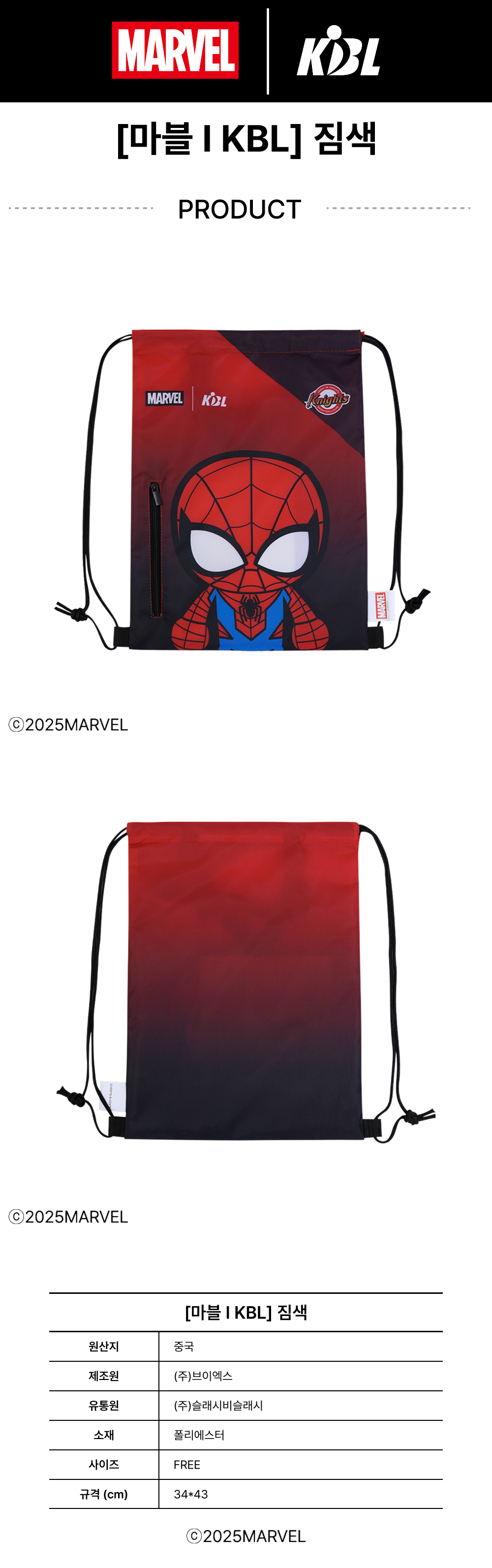 케이비엘 X 마블 컬렉션 서울 SK 스파이더맨 짐색