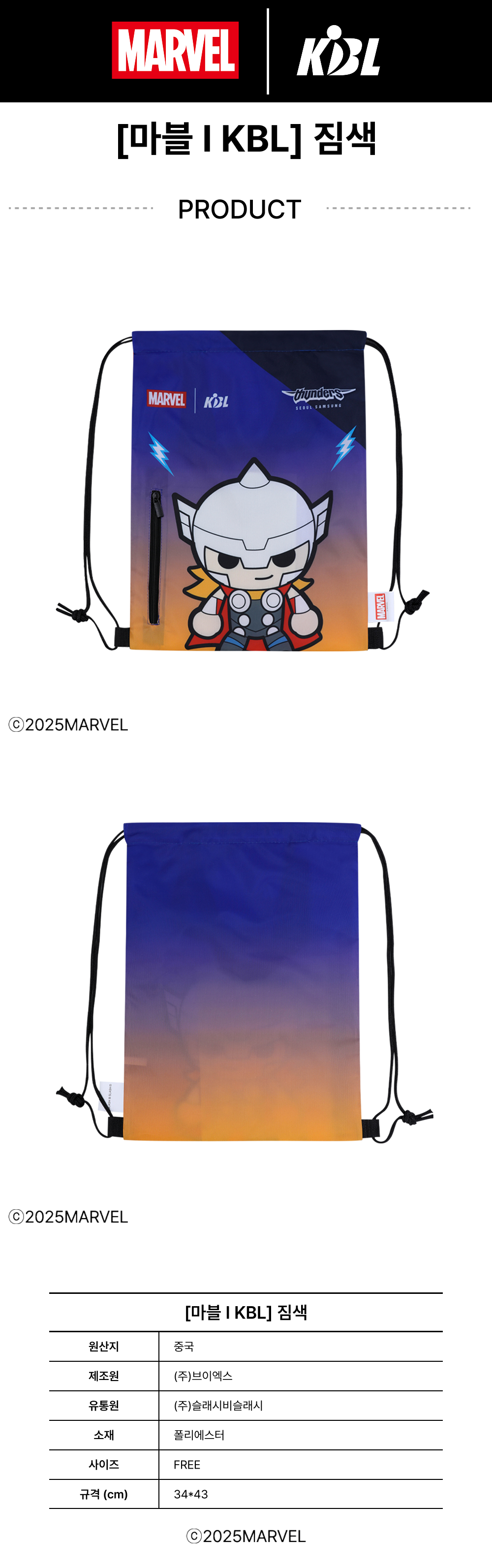 KBL X MARVELCollection Seoul Samsung Thunders Thor Gym Sack
