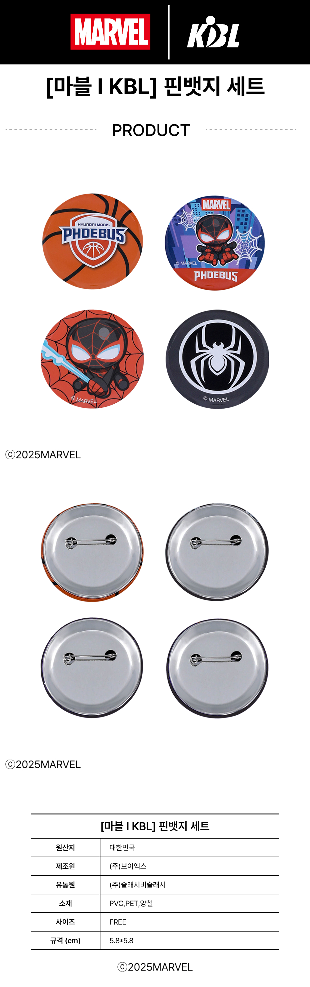 KBL X MARVELCollection Ulsan Hyundai Mobis Phoebus Miles Morales Pin Badge Set (4pcs)