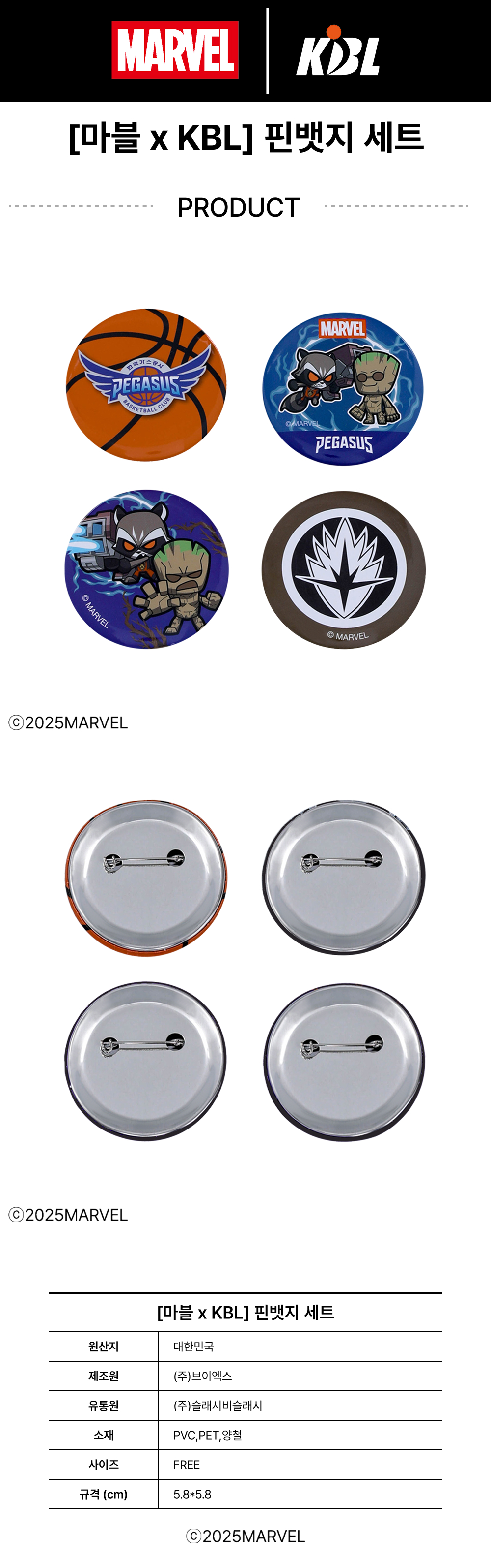 KBL X MARVELCollection Daegu KOGAS Pegasus Groot & Rocket Pin Badge Set (4pcs)