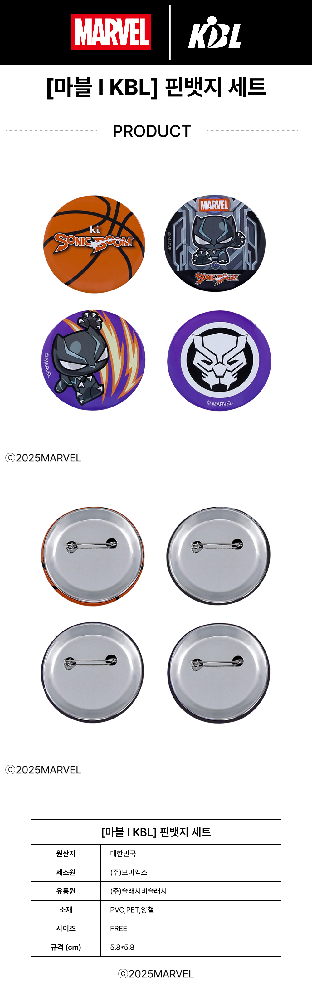 KBL X MARVELCollection Suwon KT SonicBoom Black Panther Pin Badge Set (4pcs)
