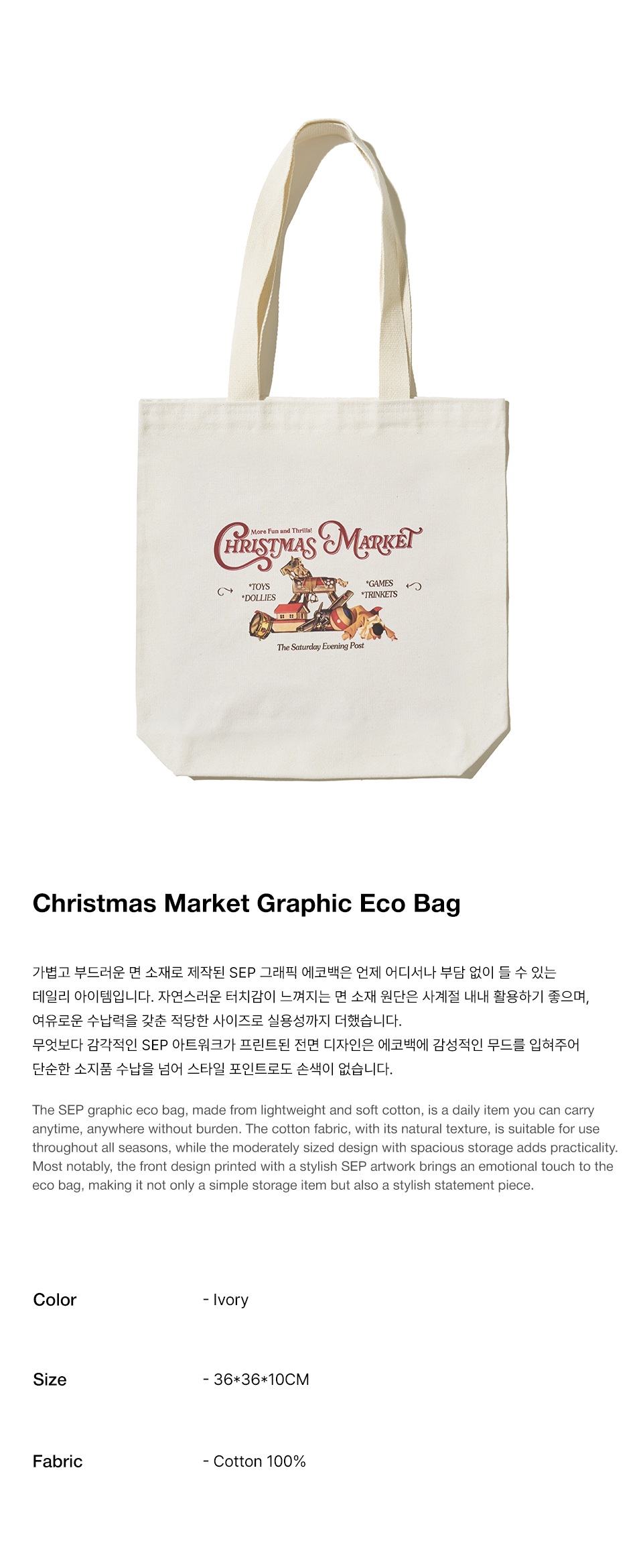 더 새터데이 이브닝 포스트 크리스마스 마켓 그래픽 에코백