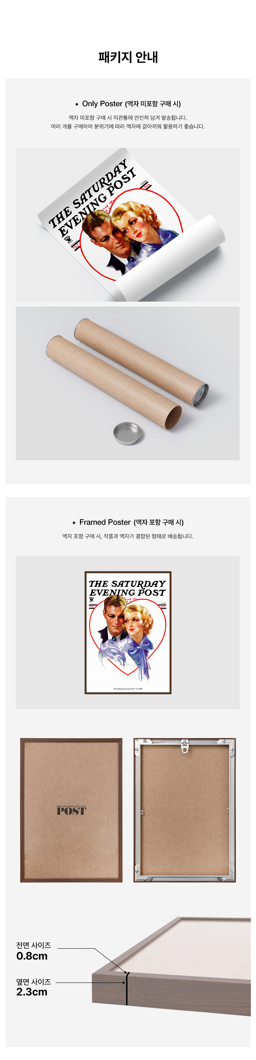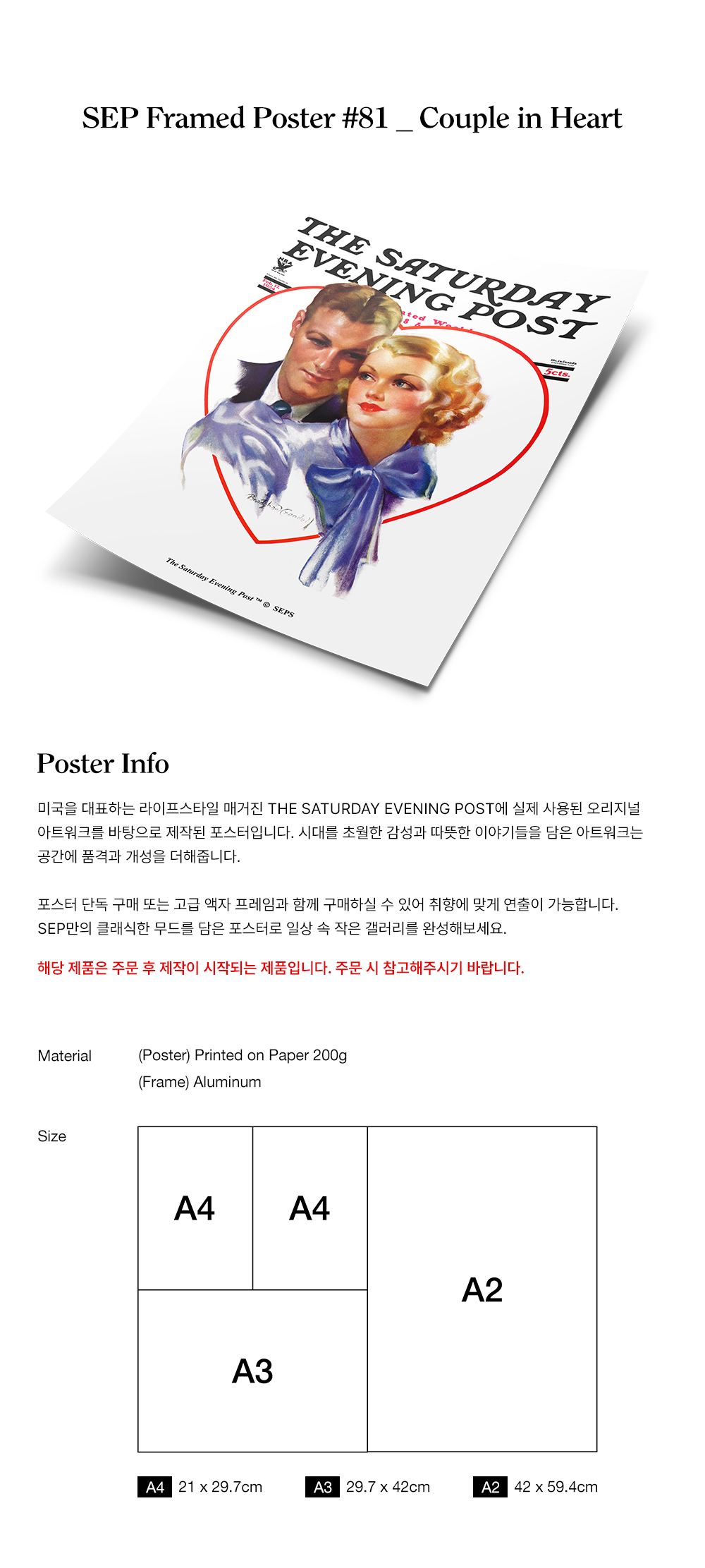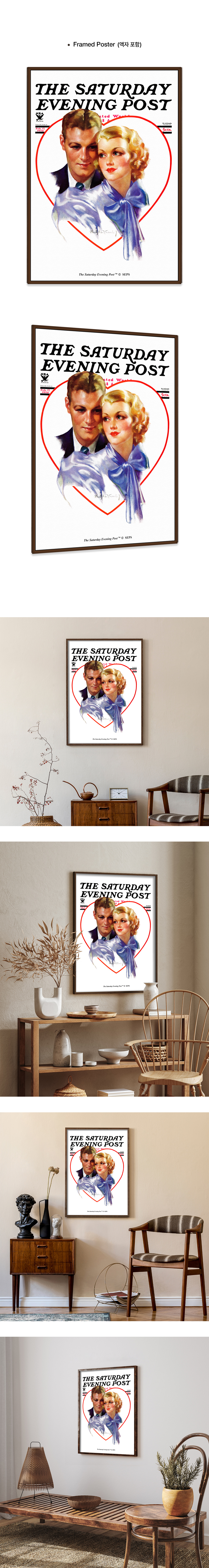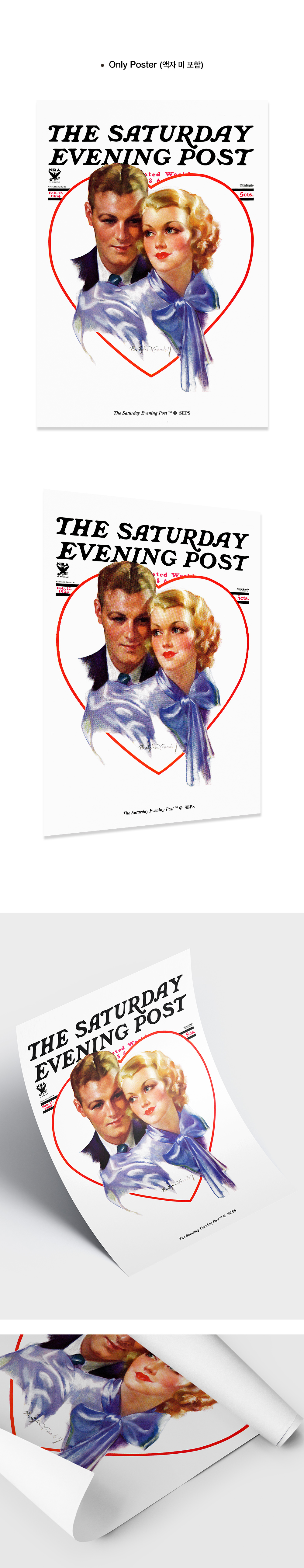 더 새터데이 이브닝 포스트 프레임 포스터 하트 속의 커플 A2