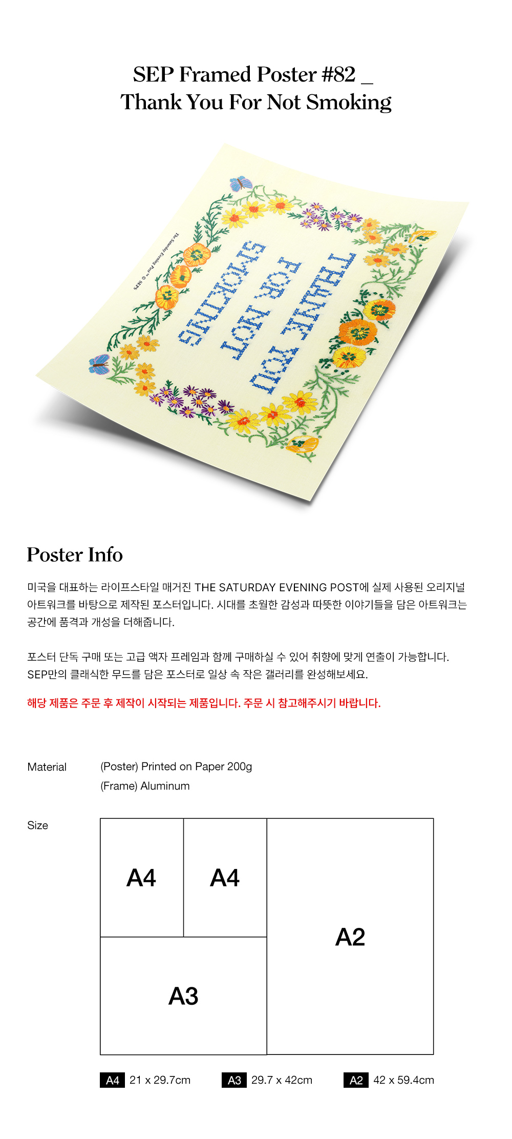 더 새터데이 이브닝 포스트 프레임 포스터 금연 감사 문구 A2