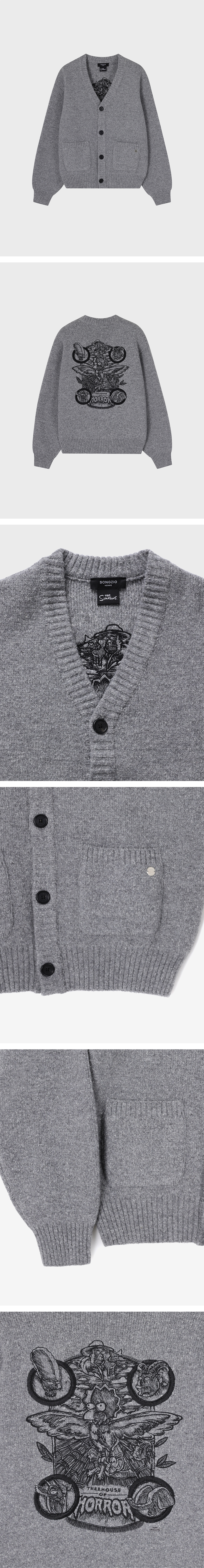 - SONGZIO | THE SIMPSONS의 '트리하우스' 브이넥 가디건 - 헤어리한 외관의 울 블랜디드 네프 원사 - 5게이지의 볼륨 있는 두께 - 전면 아웃포켓 상단 'SONGZIO PARIS' 메탈 장식 포인트 - 후면 '리버스 패밀리' 엠브로이드 자수 - 세미 오버핏 실루엣 FABRICATION MADE IN KOREA