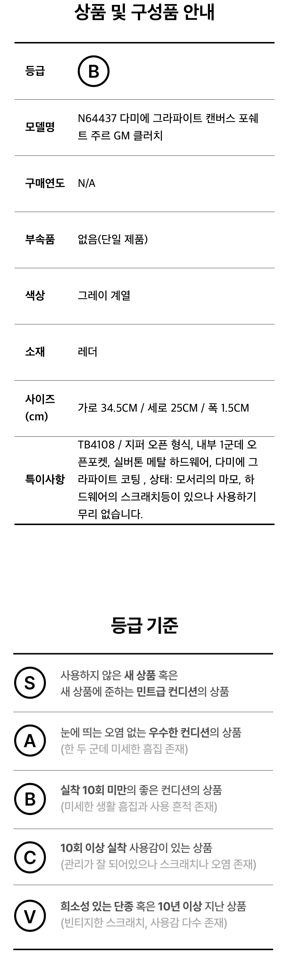 루이비통 다미에 그라파이트 캔버스 포쉐트 주르 GM 클러치