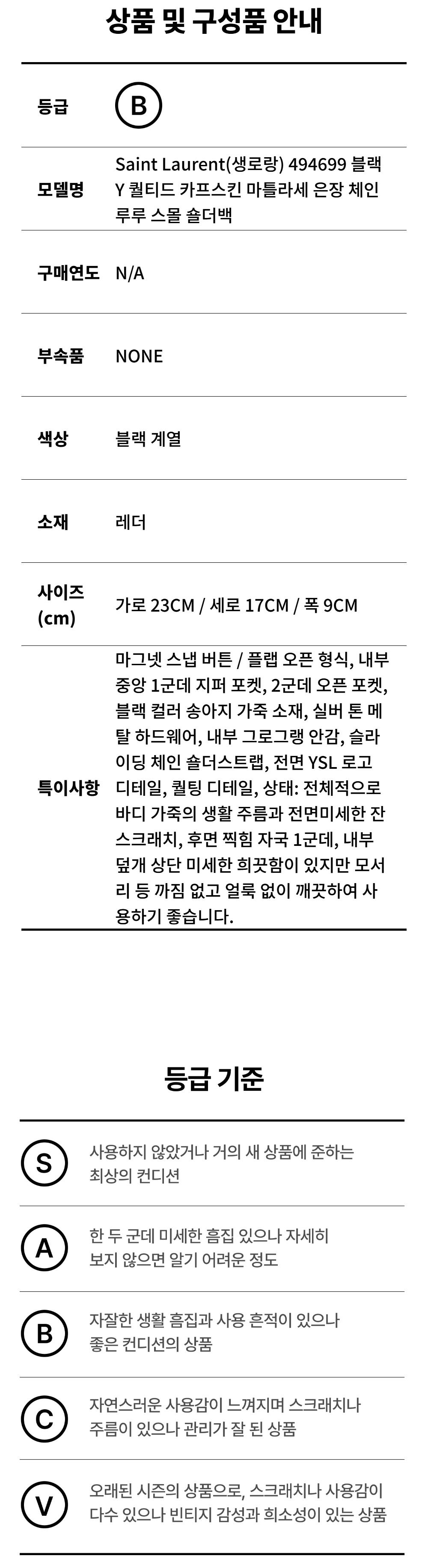 생로랑 94699 블랙 Y 퀄티드 카프스킨 마틀라세 은장 체인 루루 스몰 숄더백 494699DV7261000