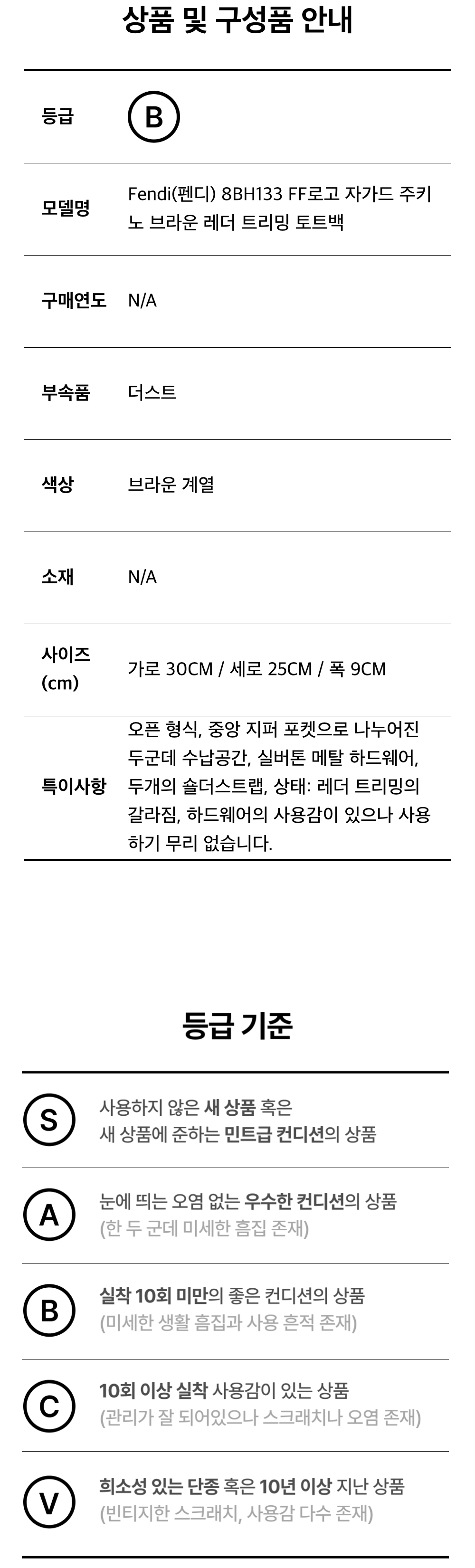 펜디 8BH133 FF로고 자가드 주키노 브라운 레더 트리밍 토트백