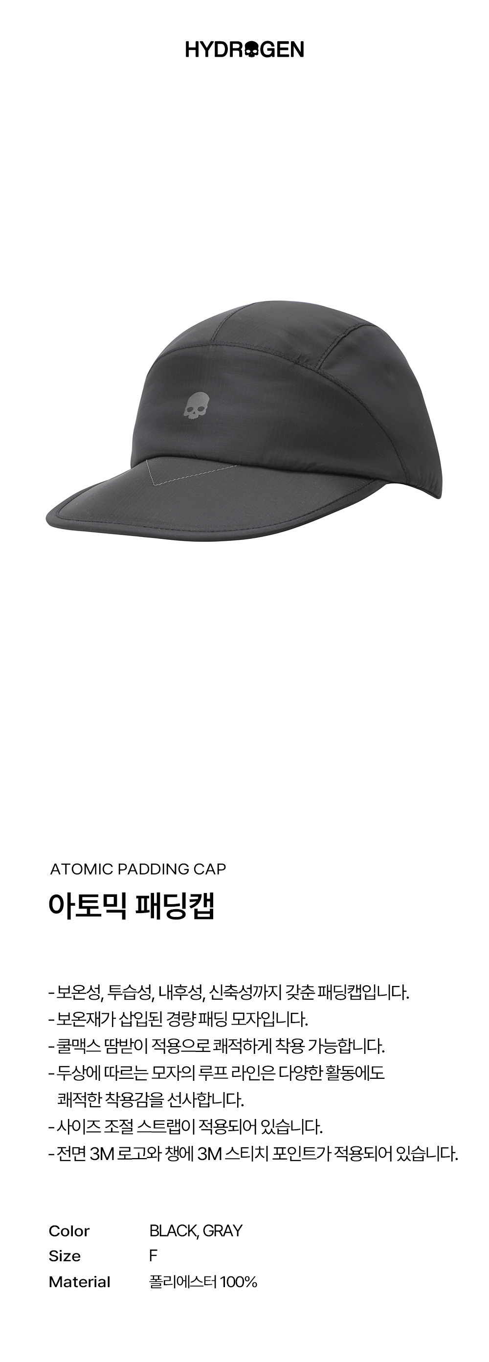 하이드로겐 아토믹패딩캡 블랙