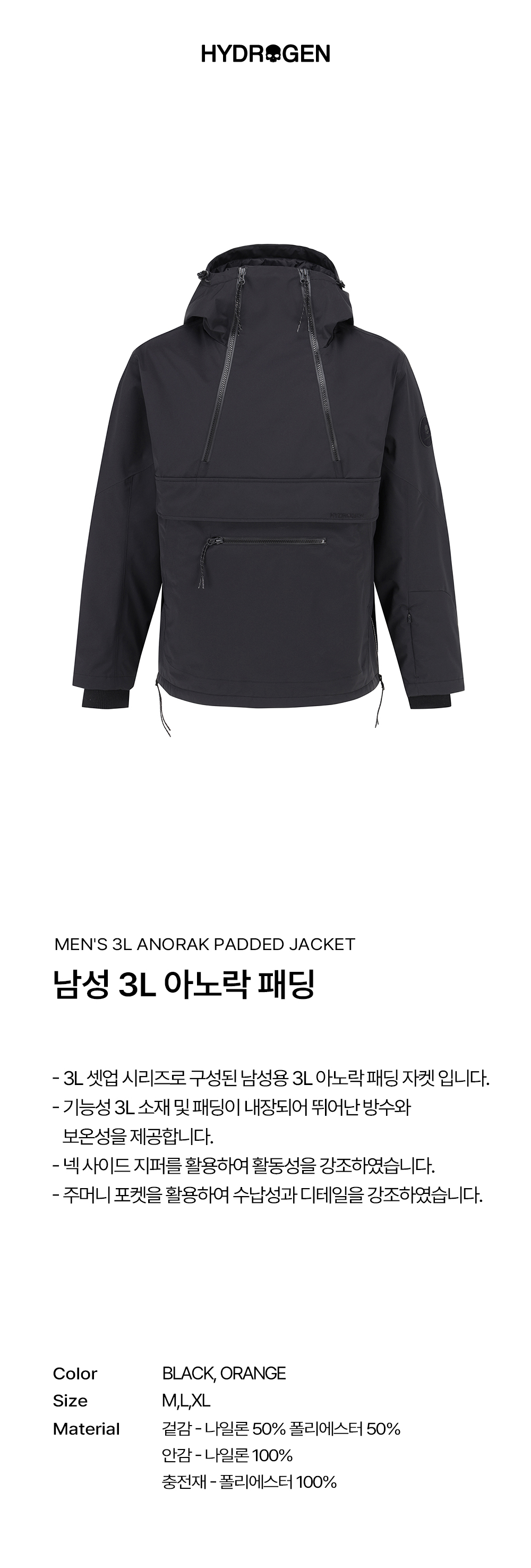 하이드로겐 남성 3L 아노락 패딩 블랙