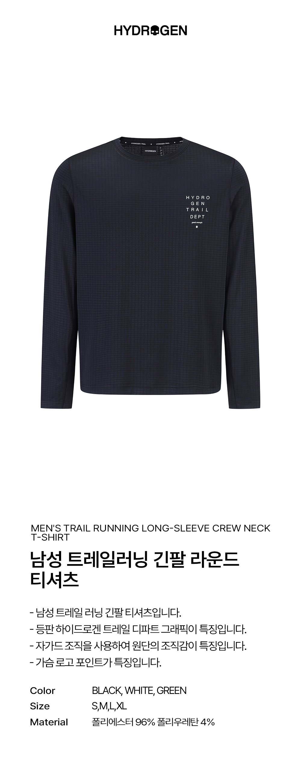 하이드로겐 남성 트레일러닝 긴팔 라운드 티셔츠 블랙
