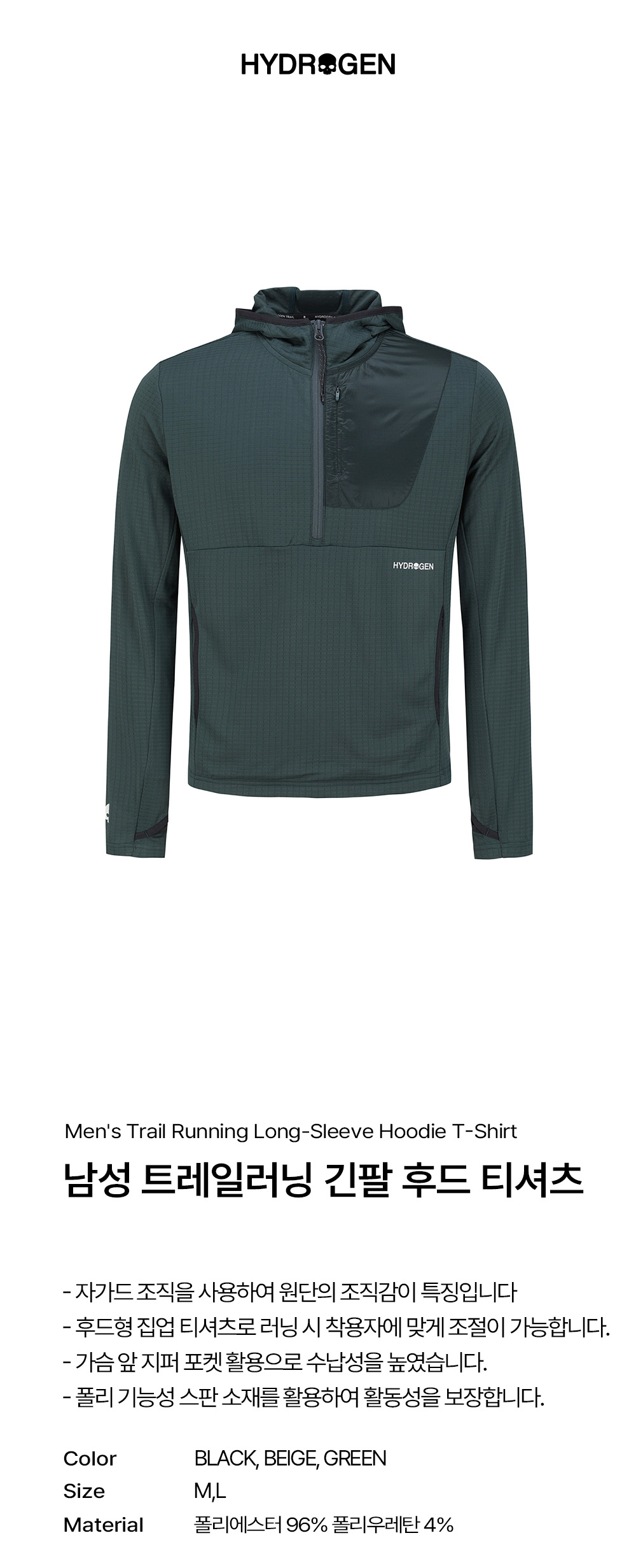 하이드로겐 남성 트레일러닝 긴팔 후드 티셔츠 그린