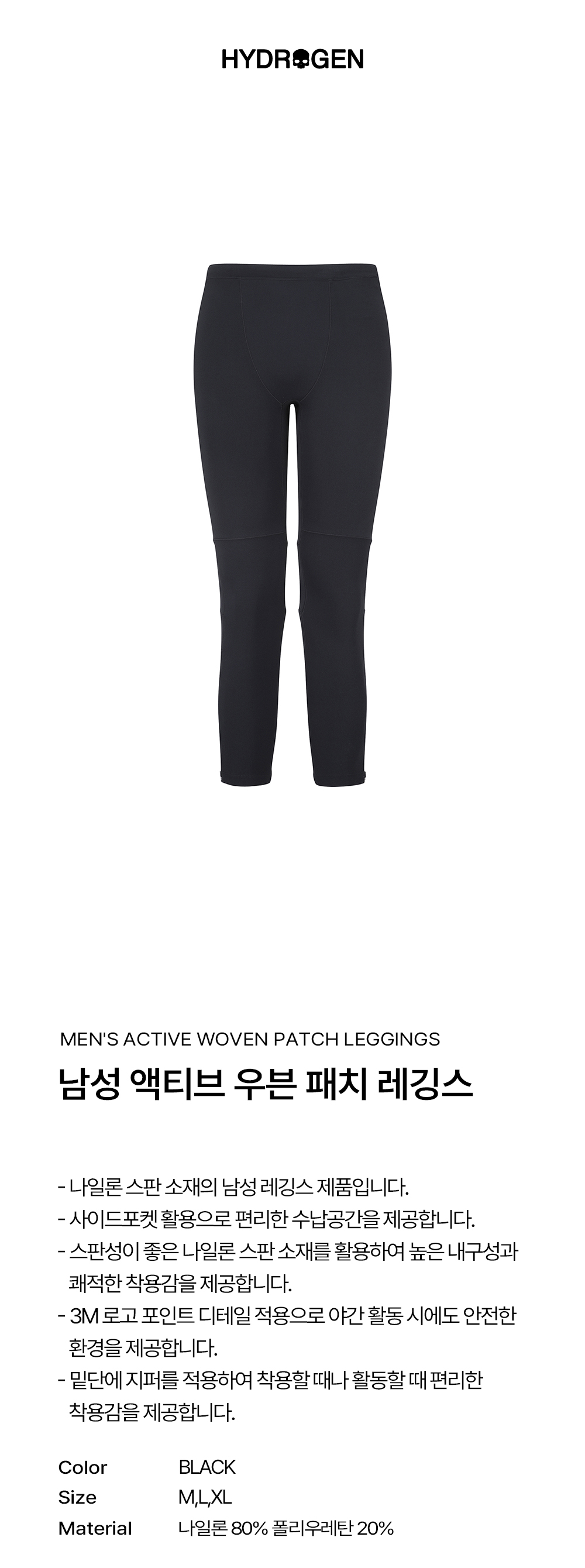 하이드로겐 남성 액티브 우븐 패치 레깅스 블랙