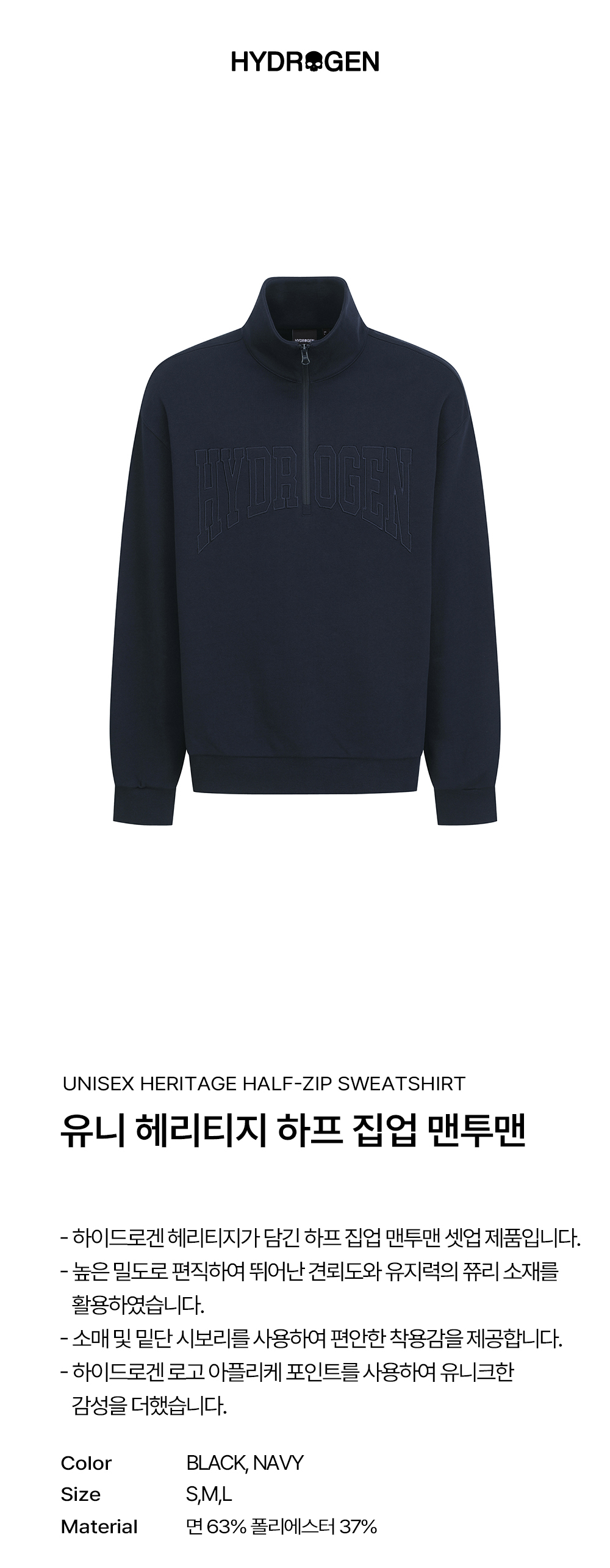 하이드로겐 유니 헤리티지 하프 집업 맨투맨 네이비