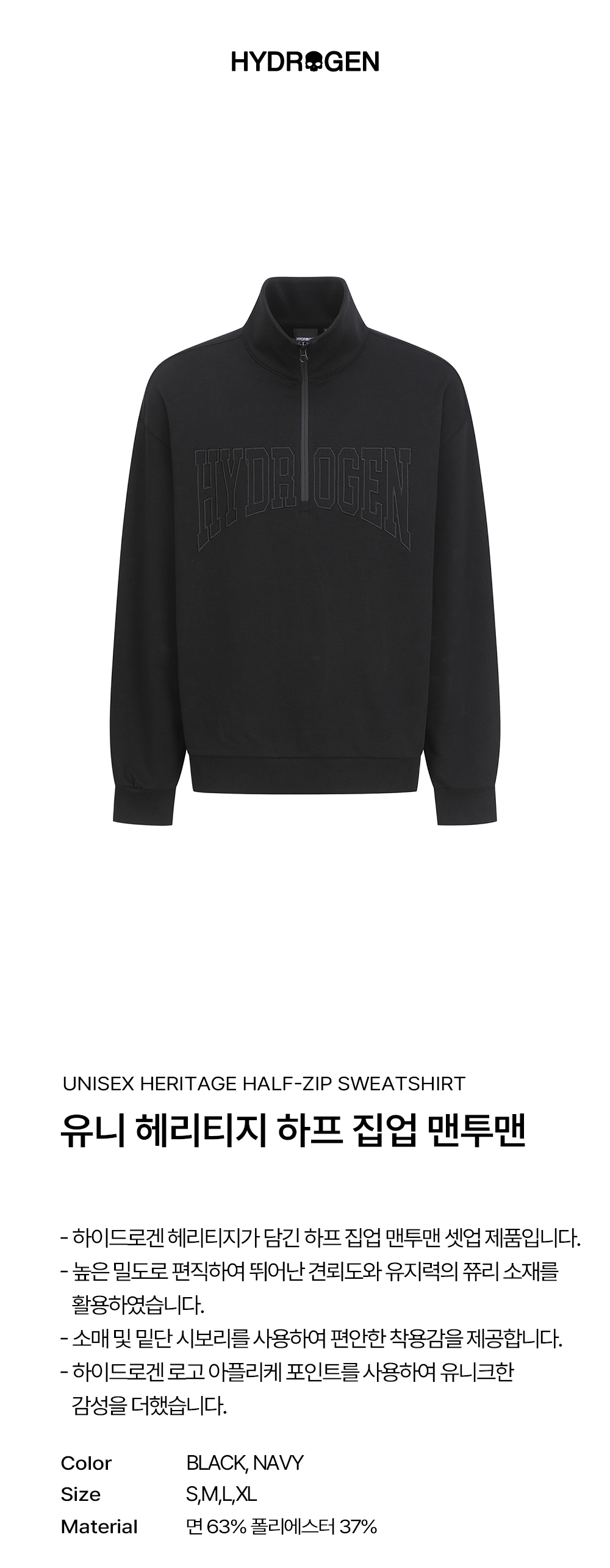 하이드로겐 유니 헤리티지 하프 집업 맨투맨 블랙