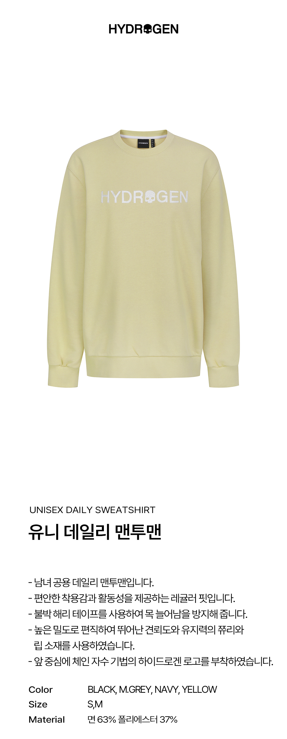 하이드로겐 유니 데일리 맨투맨 옐로우