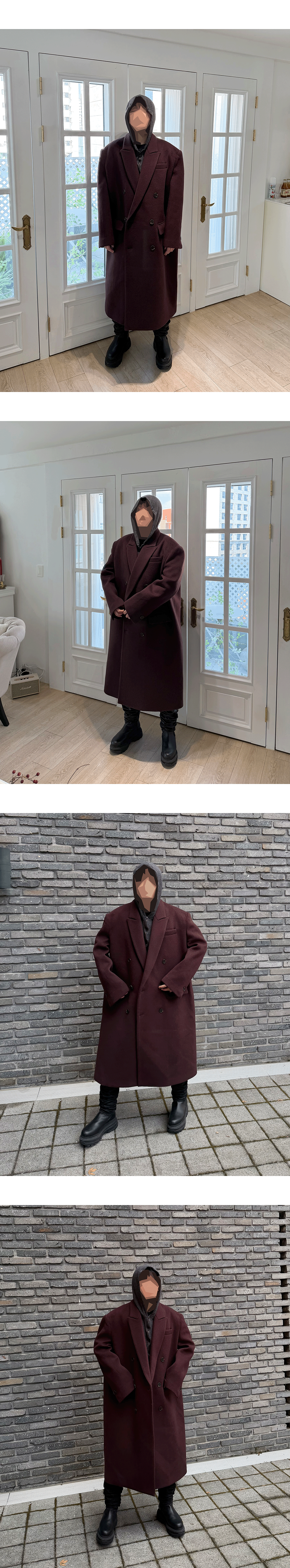 언더마이카 25FW 오버 박시 핏 테일러드 코트 버건디