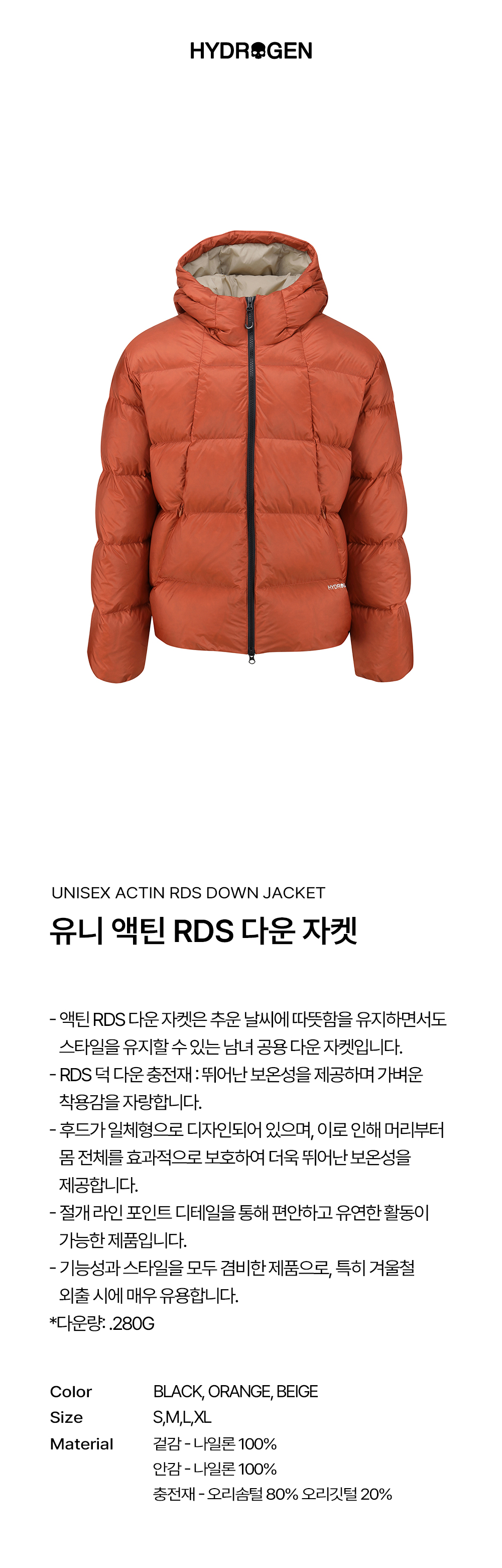 하이드로겐 유니 액틴 RDS 다운 자켓 오렌지