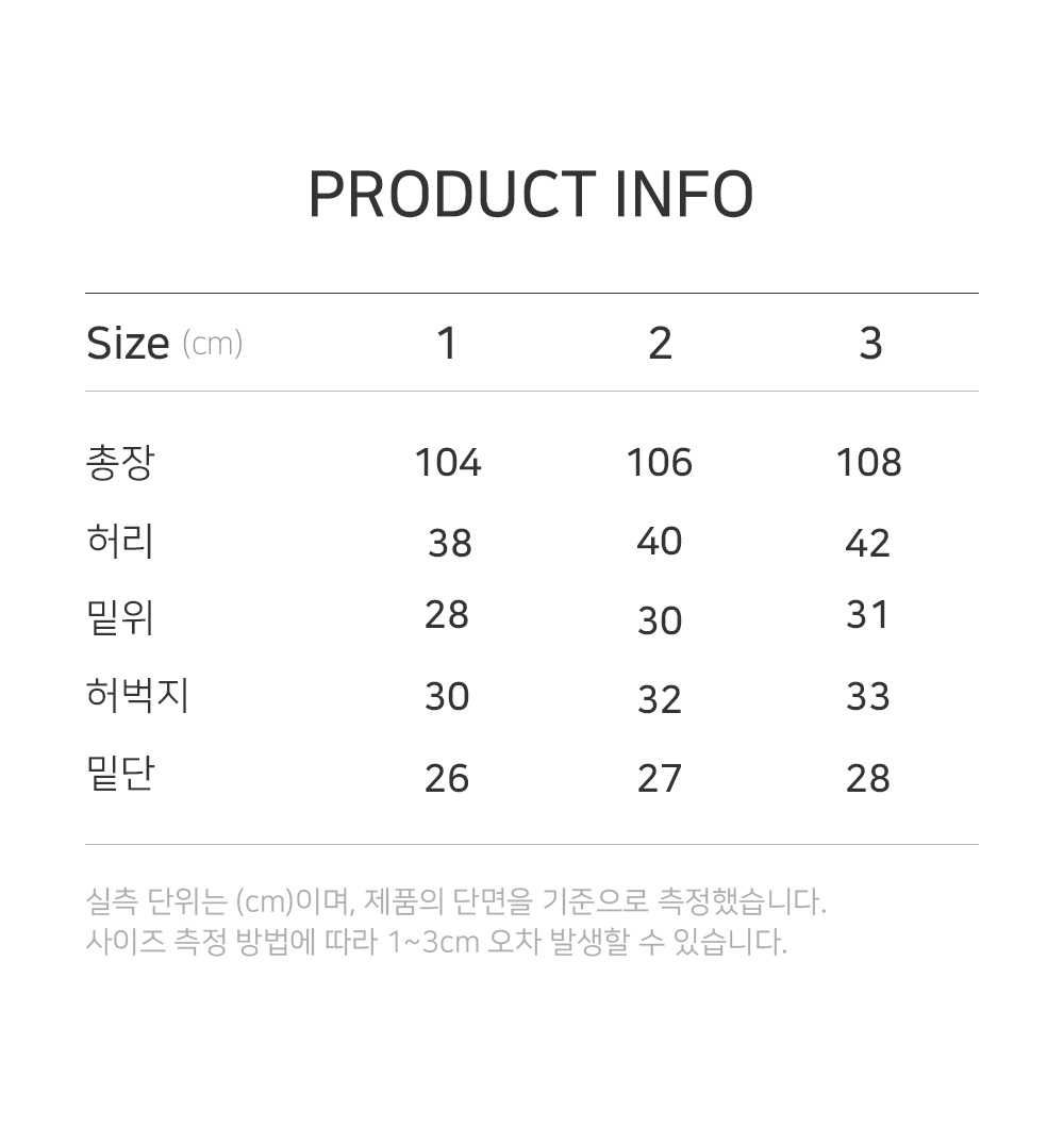 | 허리 | 허벅지 | 밑단 | 밑위 | 총장 |
