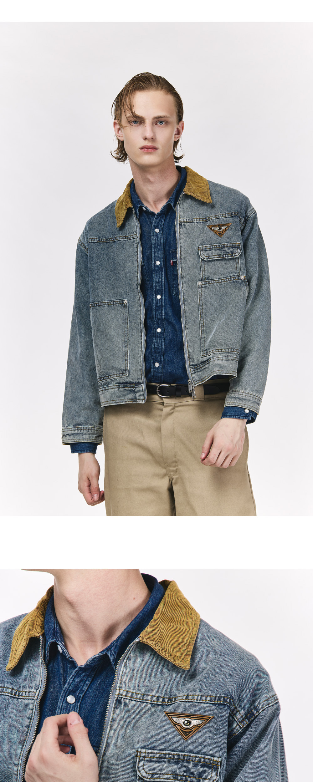더그레이티스트 브라운 넥 데님 자켓
