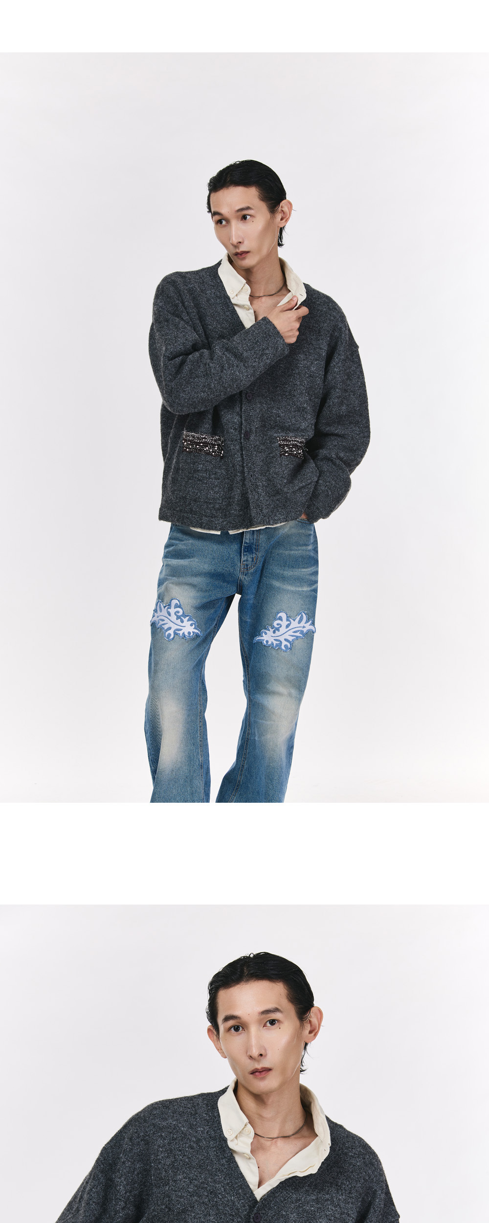 더그레이티스트 포켓 포인트 가디건 그레이