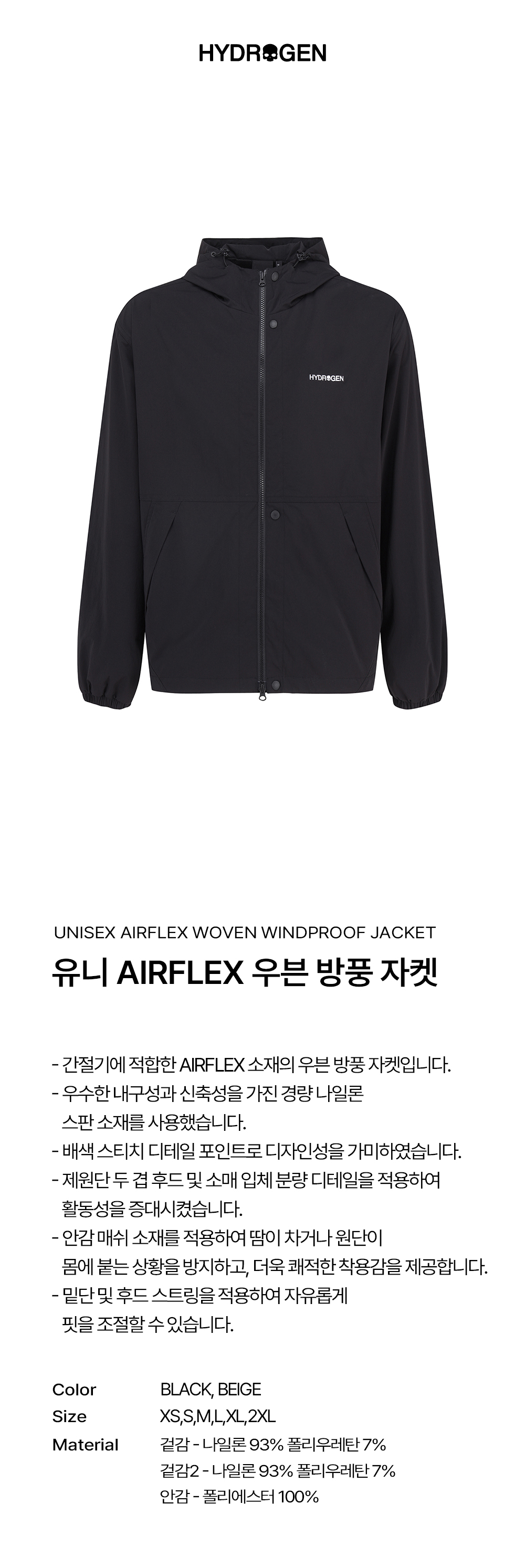하이드로겐 유니 AIRFLEX 우븐 방풍 자켓 블랙