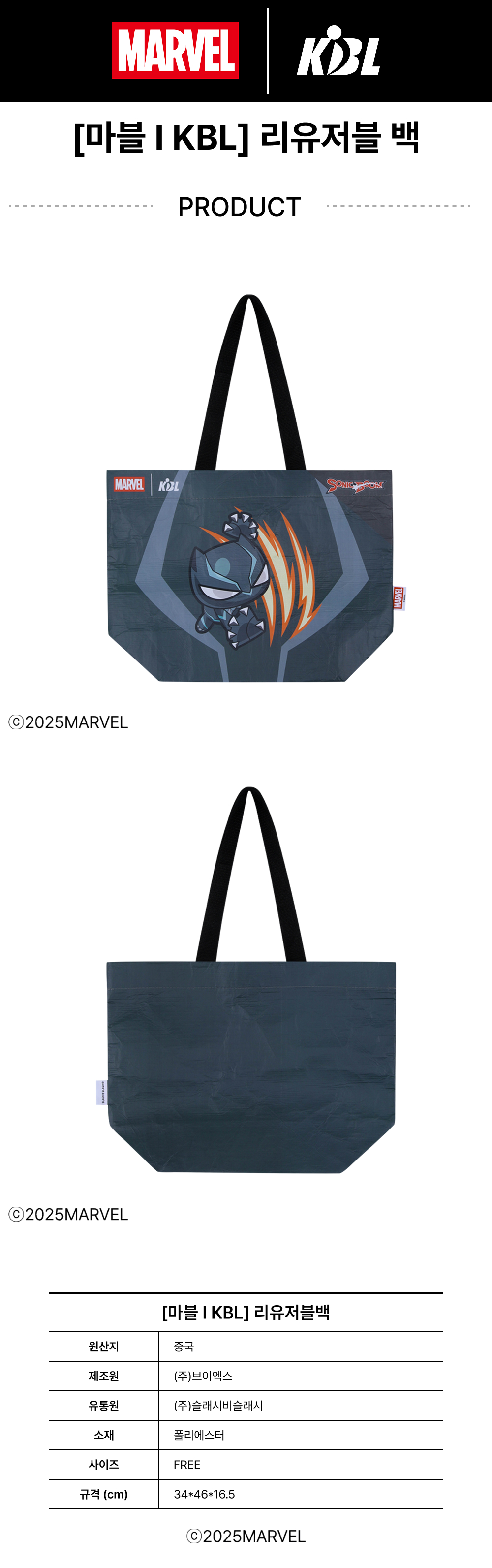 케이비엘 X 마블 컬렉션 수원 KT 블랙팬서 리유저블백