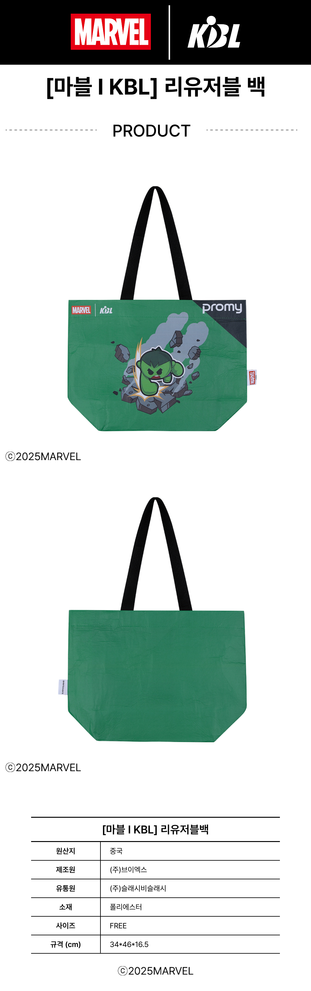 케이비엘 X 마블 컬렉션 원주 DB 헐크 리유저블백