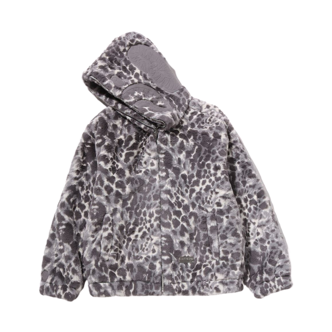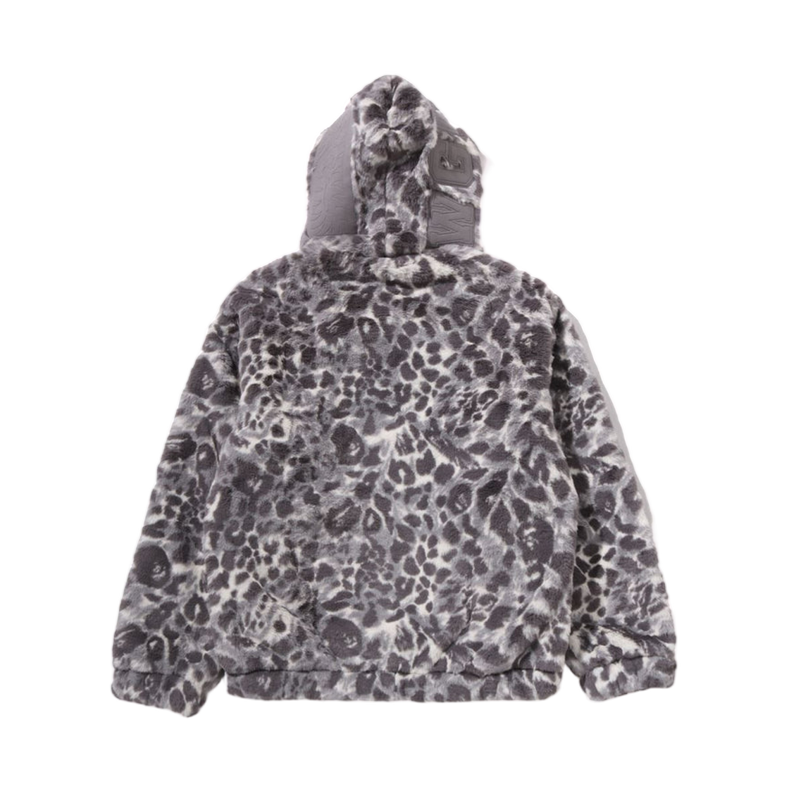BAPE Wild Leopard Pattern Faux Fur Shark Full Zip Jacket Gray