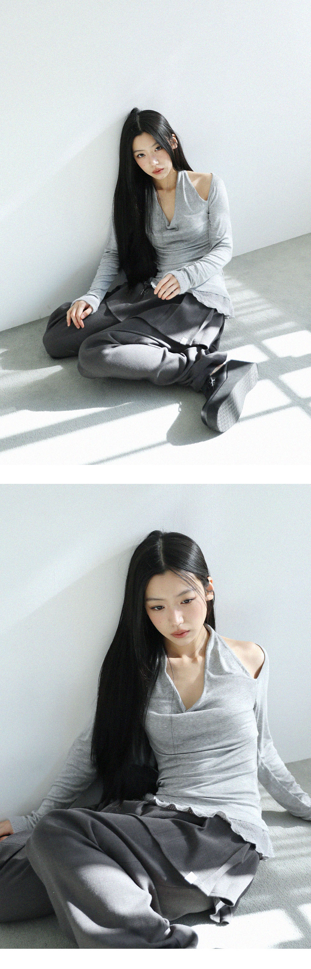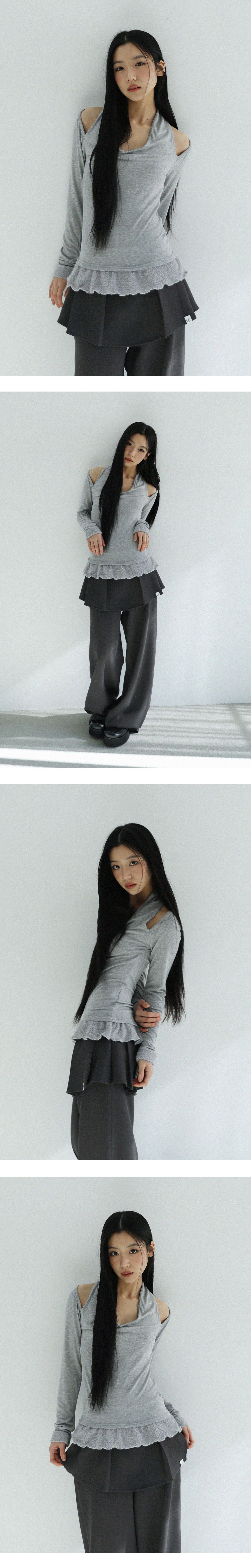 어글리쉐도우 스카프 퍼 프릴 티셔츠 그레이