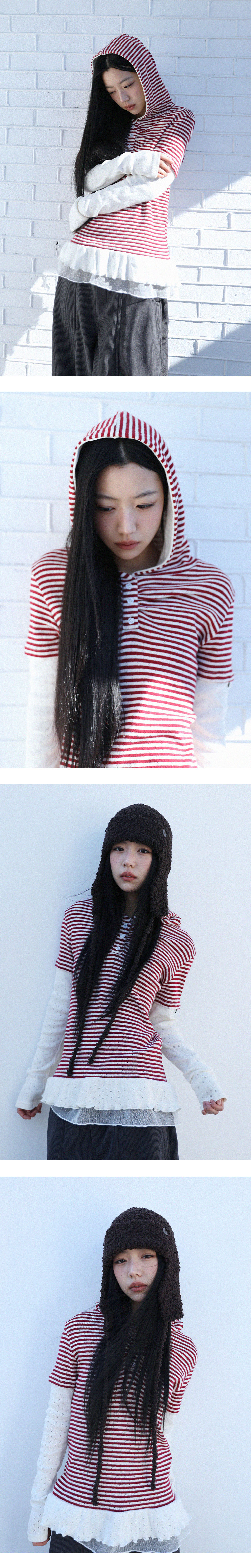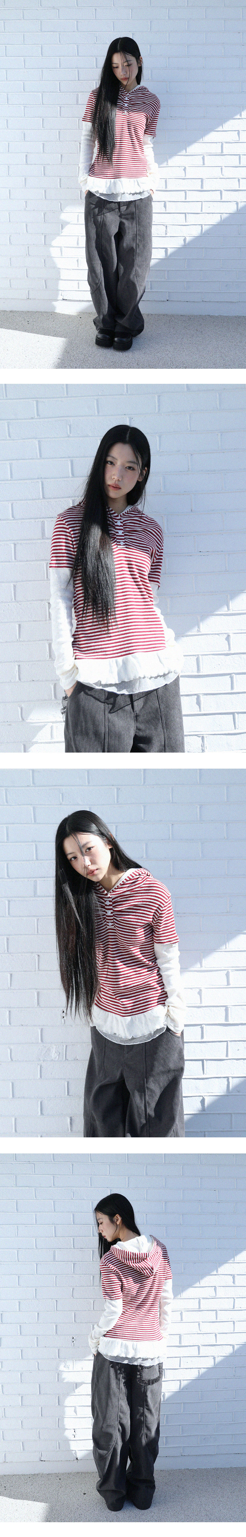[MADE IN KOREA] [Material] Cotton 100% [Date of Manufacture] 2025.11 [Model] 160cm / Top (S) Bottom (S) ** Model Fitting Size : F [Size Guide] F : Shoulder 45 Chest 45 Sleeve 69 Total Length 68 (cm) * 측정 방식에 따라 1-2 cm 오차가 있을 수 있습니다. * 화면에 따라 실제 색상이 차이가 날 수 있습니다. 레이어드 된 듯한 디자인입니다. 밑단은 이중 러플로 포인트를 주었으며, 프론트 부분의 플라워 단추가 들어갔습니다. 부드러운 면 소재로 세탁기 사용 시 약간의 수축이 있을 수 있으니, 손세탁을 권장 드립니다. * 손세탁 시 중성세제 사용, 비틀기 금지 * 건조기 사용 금지, 그늘 자연건조 * 비틀기·탈수·건조기 금지