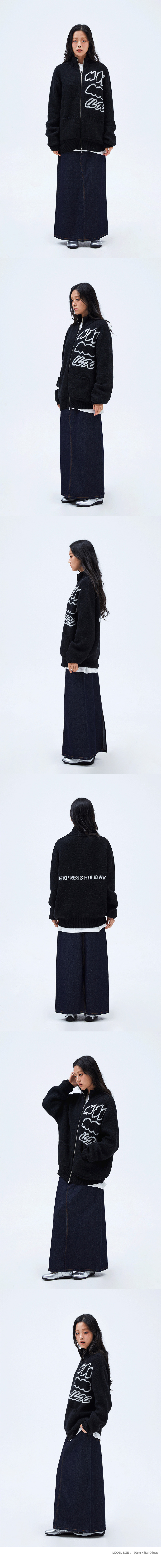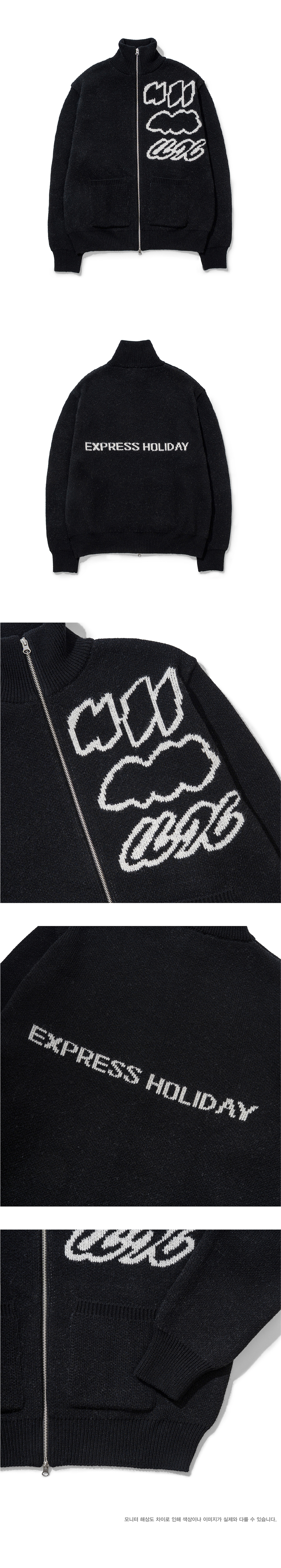 [트리플적립] 익스프레스 홀리데이 메리노 울 블랜드 니트 집업 블랙